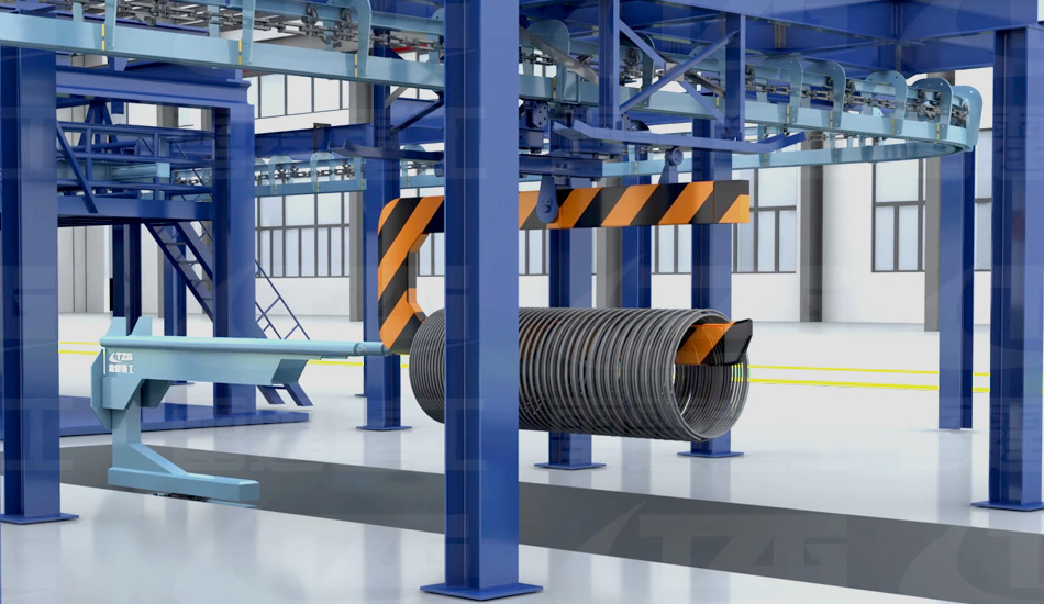 我公司在原有技術的基礎上,根據市場需求,經過技術人員的多方努力,研制出具有自主知識產權的第三代懸掛輸送機技術。此項技術在冶金高速線材、汽車、鋁業等項目上得到了廣泛應用,與前兩代機型比較,在使用壽命、承載能力、導向性能方面有明顯優勢。 經過與森德斯、摩根公司合作交流,借鑒國外先進技術,采用具有我公司自主知識產權的專利技術研制出立式卷芯架系統設備,該套設備技術先進、自動化程度高、維護方便、生產成本和各項消耗指標均達到同類機組的國際先進水平,該套設備為我公司獨有的專利技術。